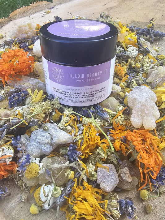 TALLOW BALM INFUSED WITH FRANKINCENSE, LAVENDER, CHAMOMILE, CALENDULA, YARROW & MEADOWSWEET, SACRED HARMONY