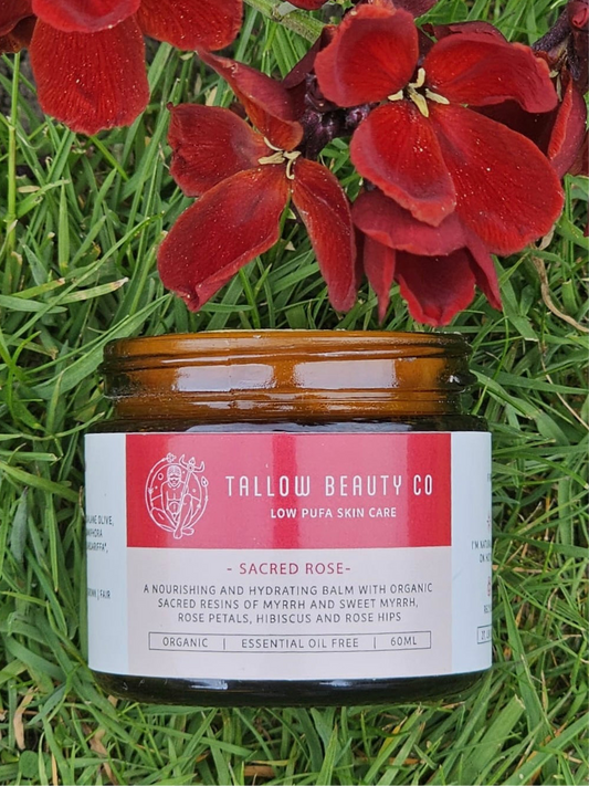 TALLOW BALM INFUSED WITH MYRRH, OPOPONAX, ROSE, ROSE HIPS & HIBISCUS, SACRED ROSE