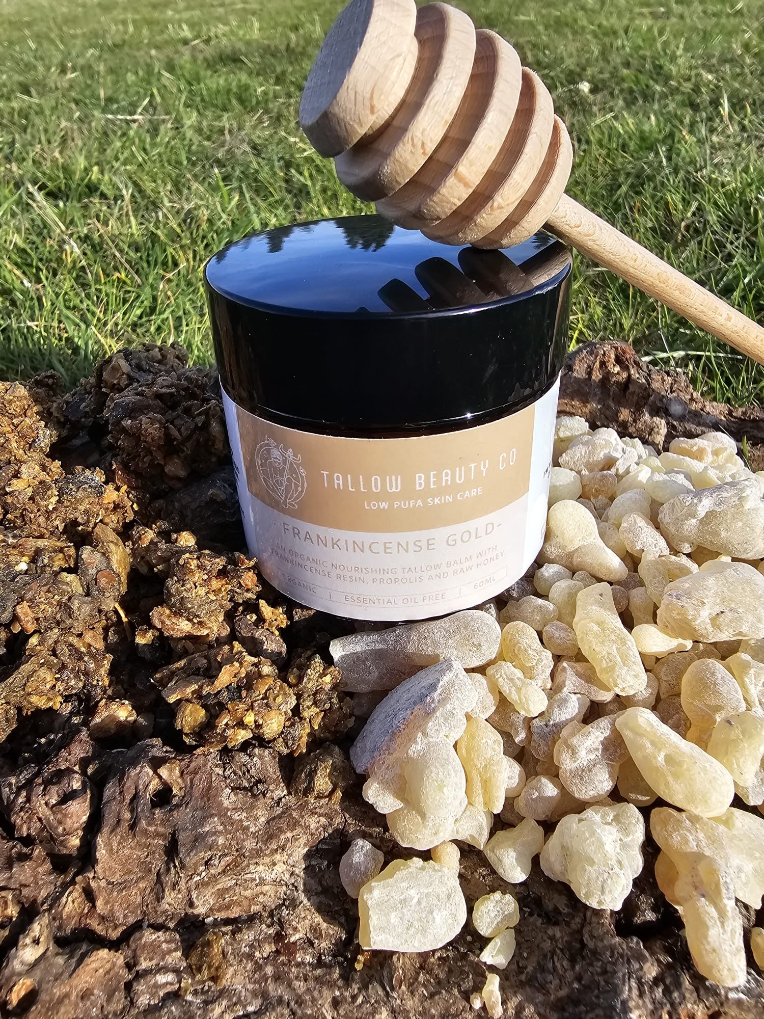FRANKINCENSE GOLD. TALLOW BALM INFUSED WITH FRANKINCENSE, PROPOLIS AND HONEY.